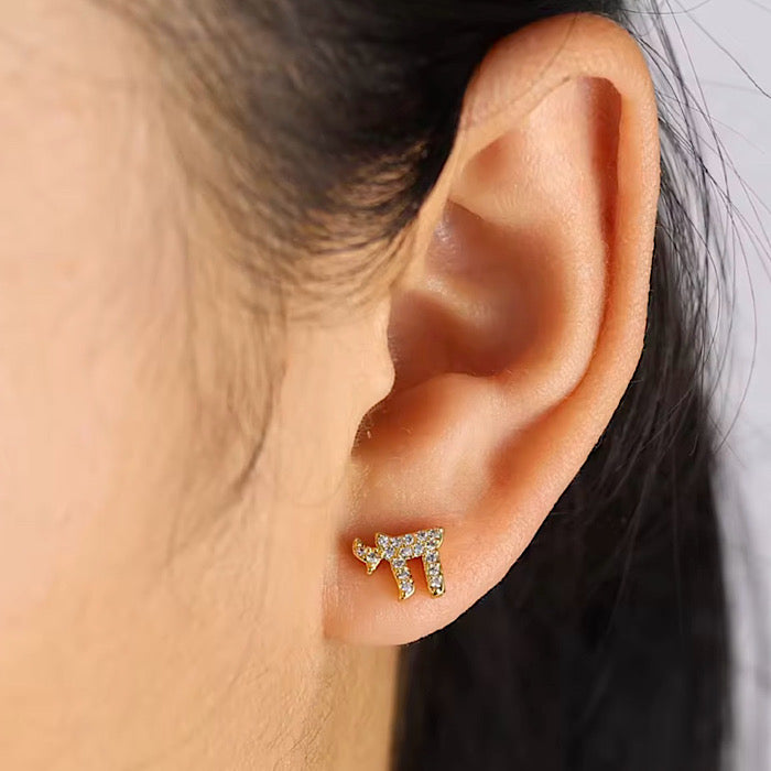 The Chai Crystal Stud Earrings are a beautiful expression of life, strength, and positivity. Featuring the iconic Chai symbol adorned with shimmering crystals, these studs bring together spiritual meaning and modern elegance in a subtle, everyday piece.