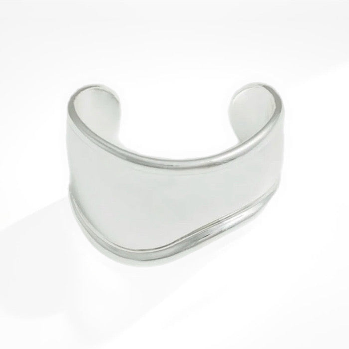 Elevate your style with the Solara Cuff, a bold yet refined statement piece. Crafted with a smooth, high-polish finish, this golden cuff wraps gracefully around the wrist, blending modern minimalism with timeless elegance. Its contoured silhouette ensures comfort while adding a touch of sophistication to any look—whether worn solo or stacked with other favorites.